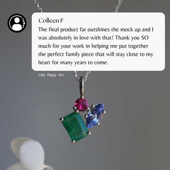 Nhu did such a fantastic job with my custom necklace! She showed me the stones and layout beforehand so I would know what to expect, and her communication is always super great. Highly recommend buying your custom jewelry from Nhu!