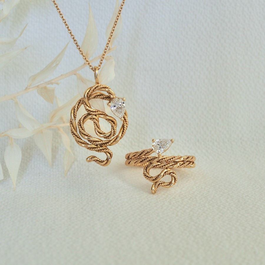 The Lunar Snake collection is designed as a physical reminder. Each necklace and ring is made one-of-a-kind, just like the journey it represents.