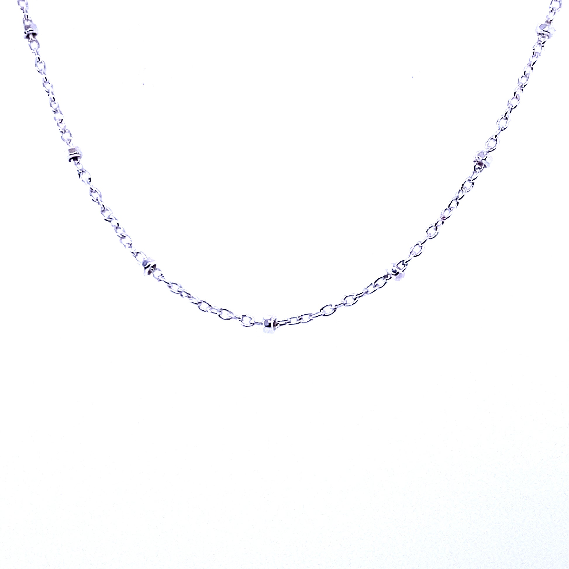 This 1.2mm sterling silver chain has 1.7mm diamond-cut hexagonal beads evenly spaced along its length that brightens the necklace. This chain is great for layering and adding a pendant.