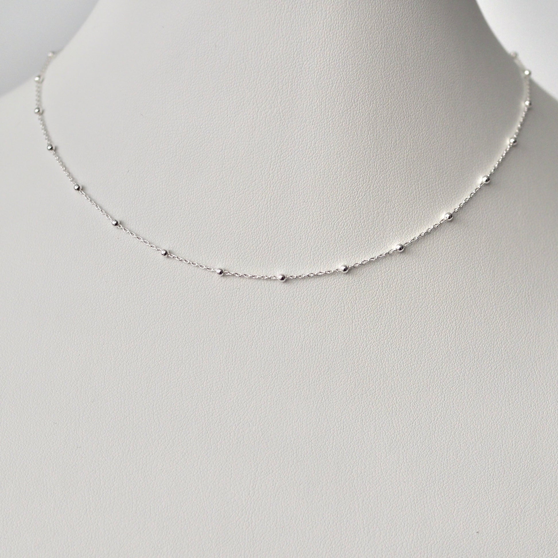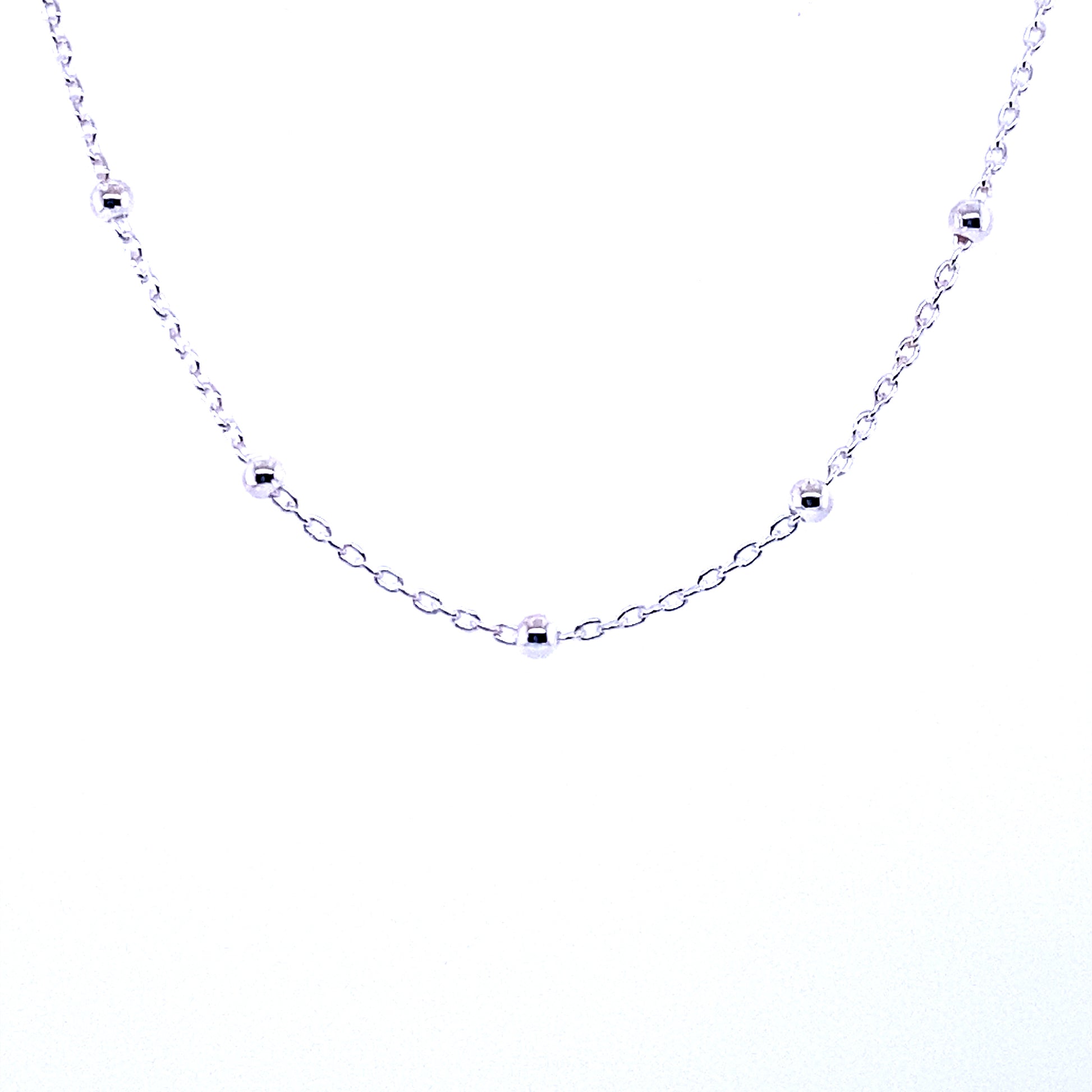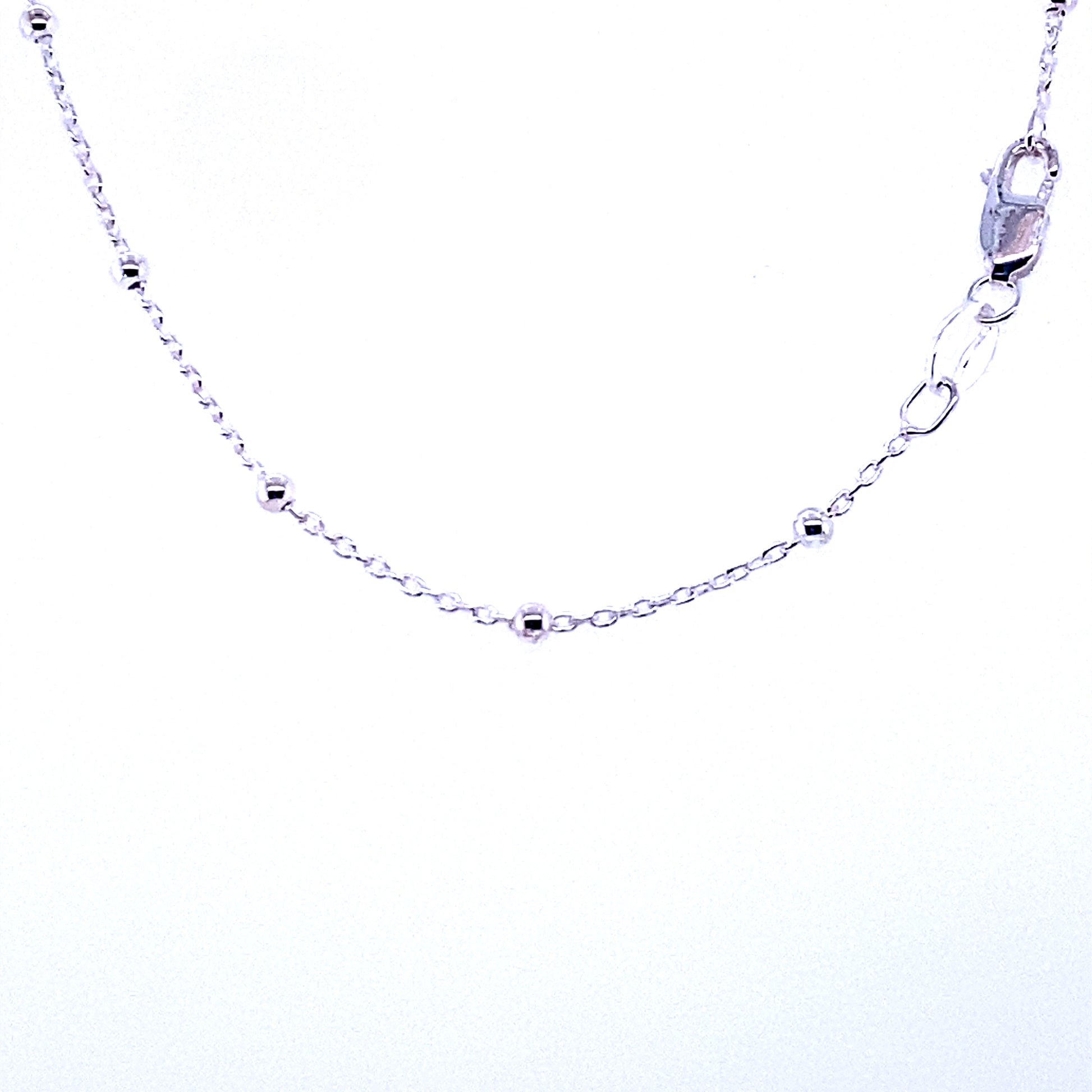 This 1.0mm sterling silver chain has 2mm rounded beads evenly spaced along its length that brightens the necklace. This chain is great for layering and adding a pendant.