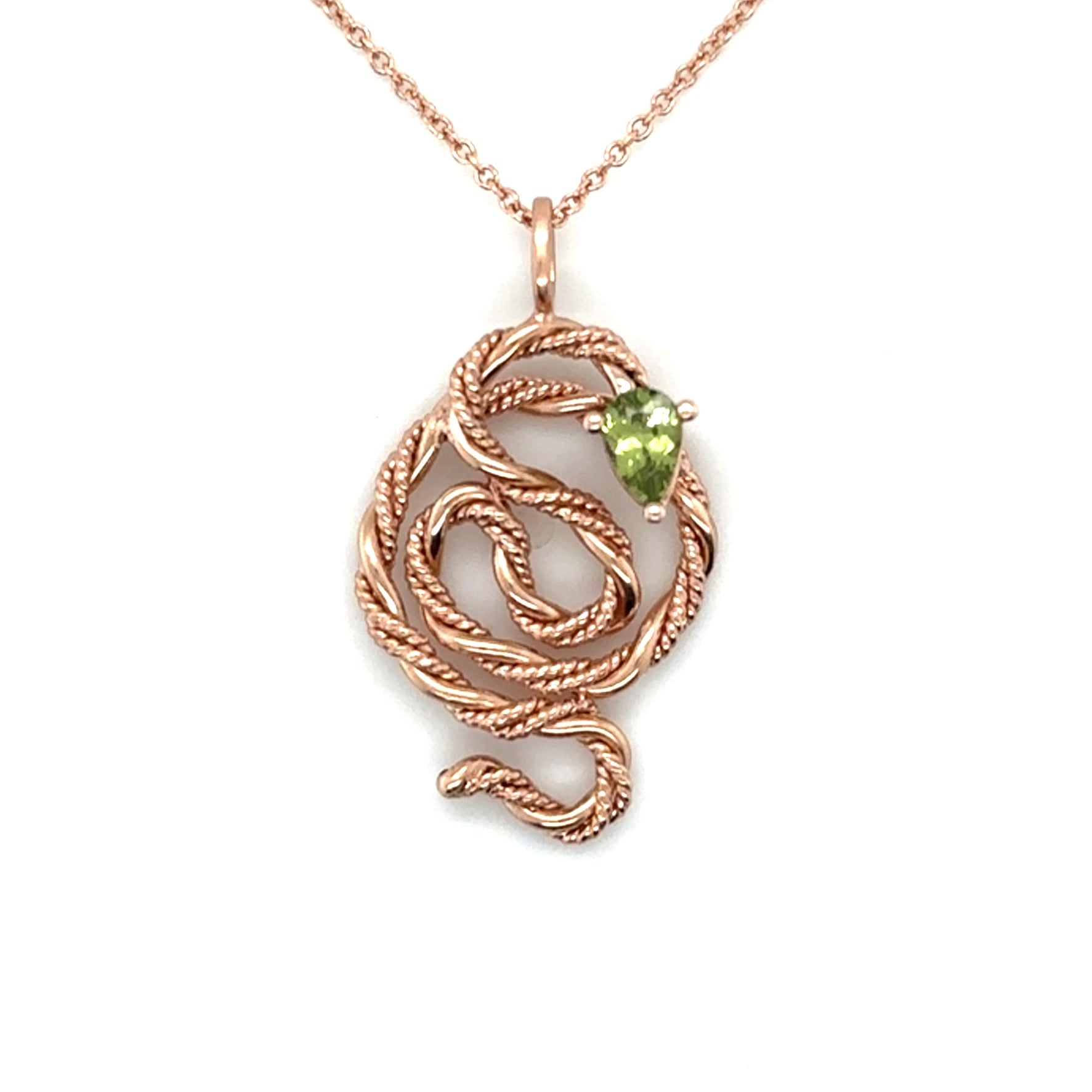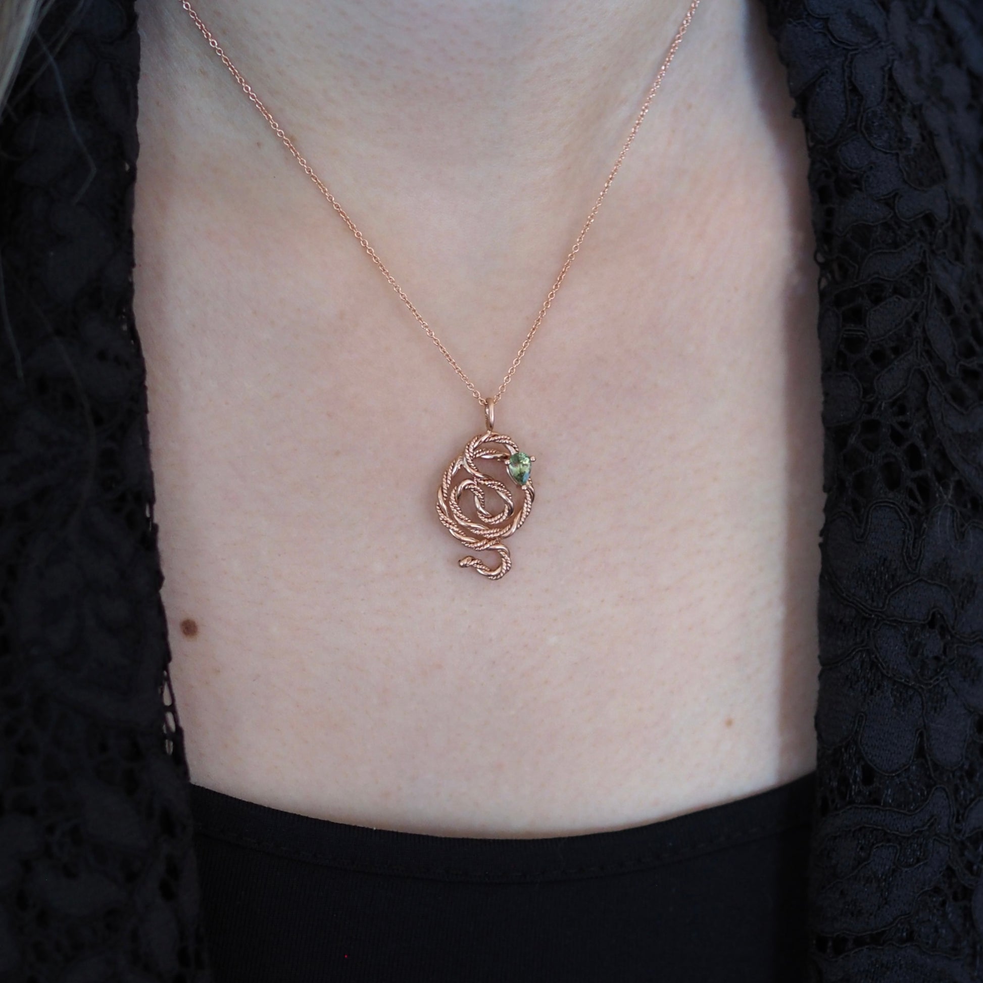 Green Sapphire Snake Necklace • 14k Rose Gold