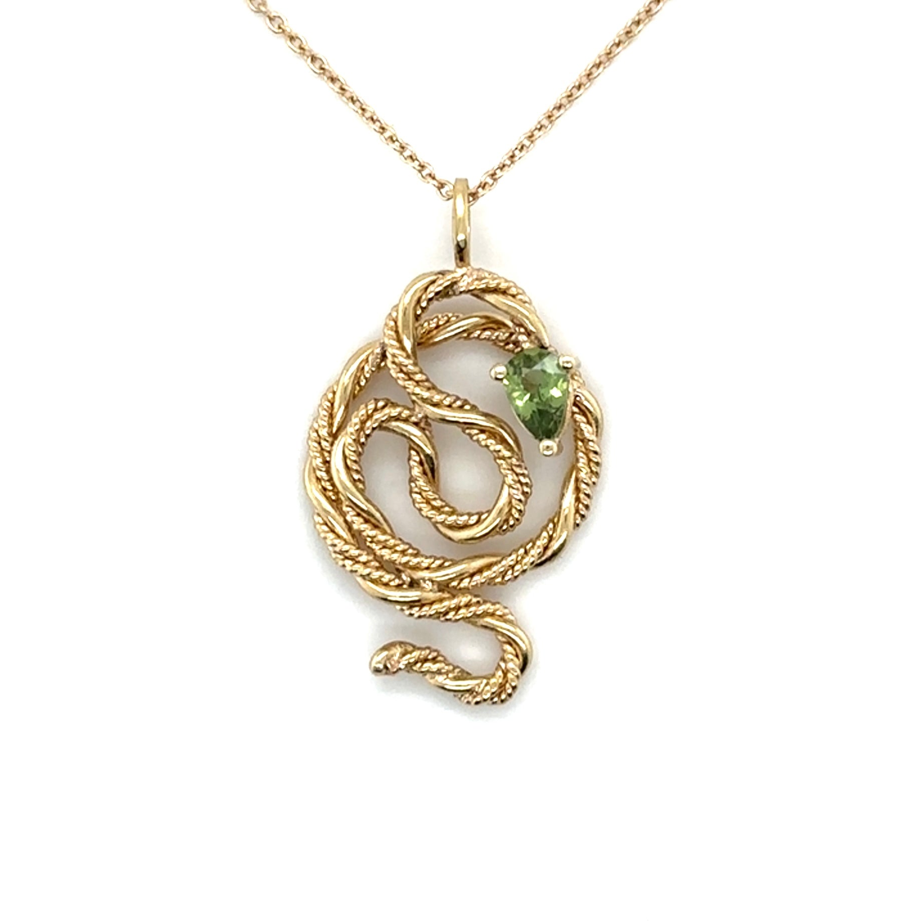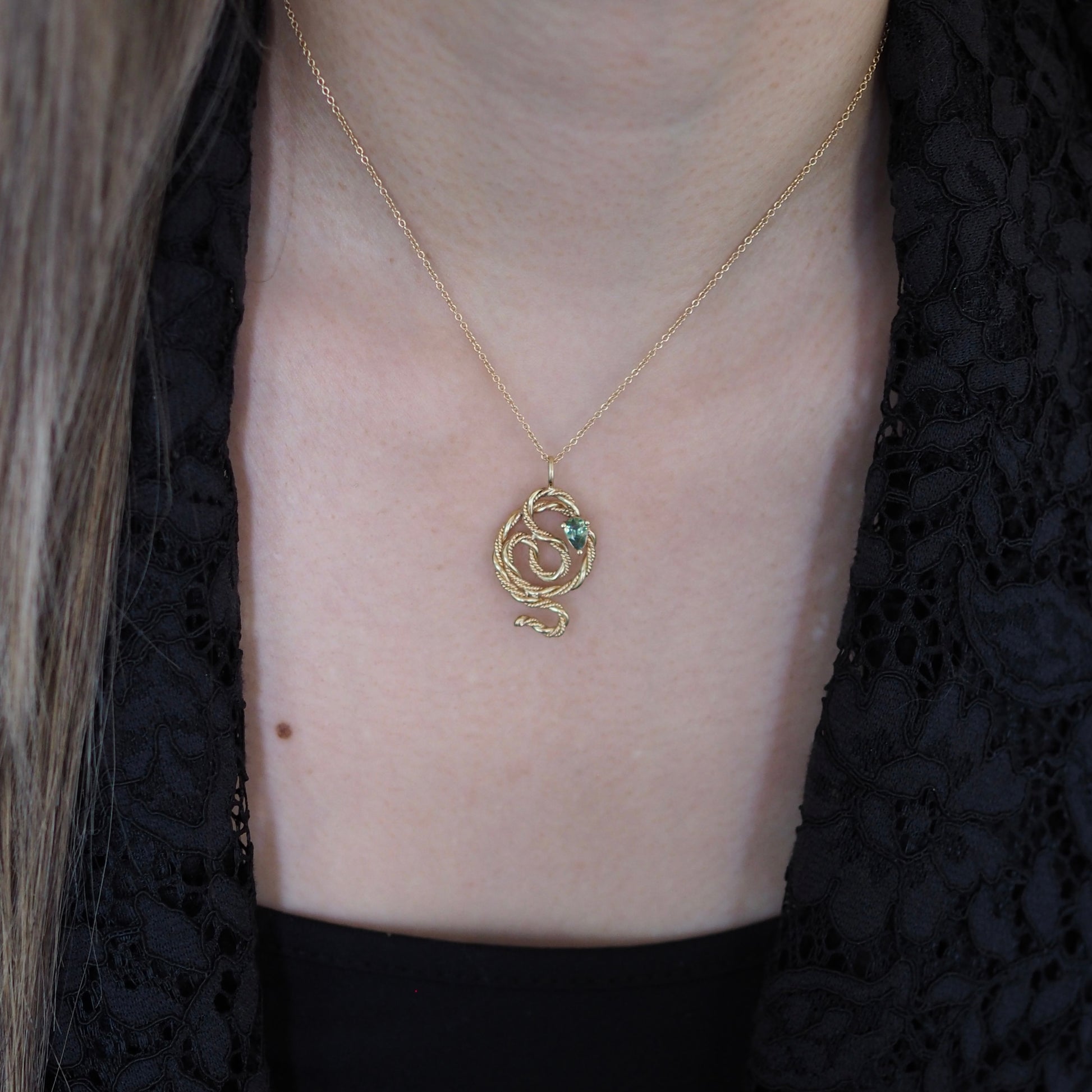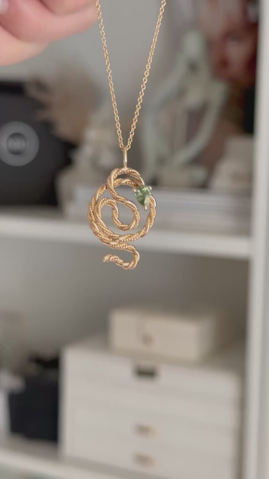 Green Sapphire Snake Necklace • 14k Yellow Gold