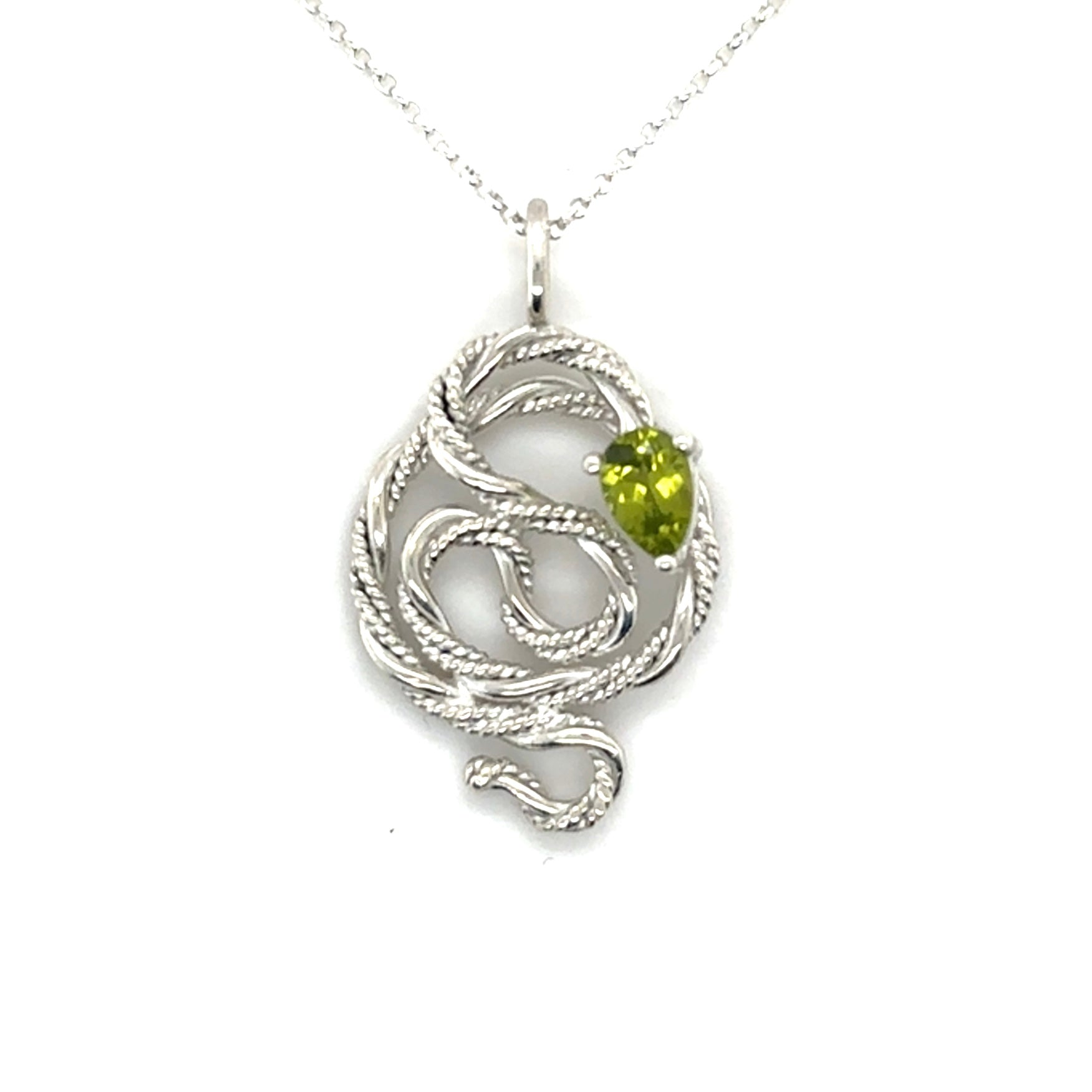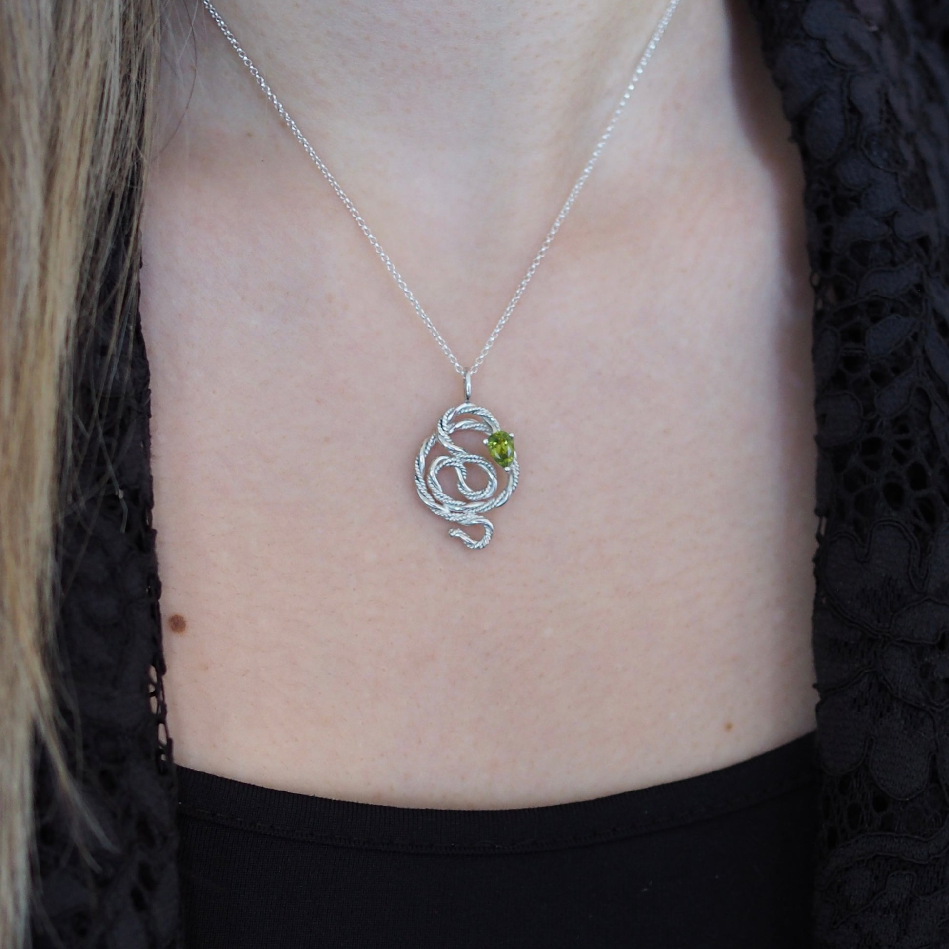 This necklace symbolizes the Wood and Metal Snakes. Described below is what this silver peridot snake can assist you with.