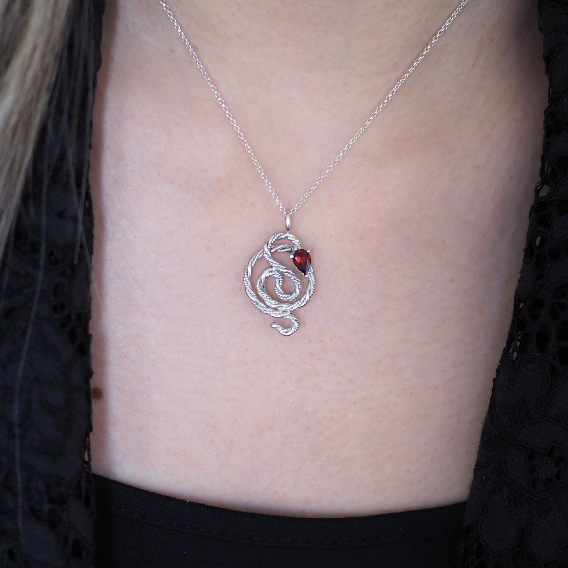 This necklace symbolizes the Fire, Metal, and January Snakes. Described below is what this silver red garnet snake can assist you with.