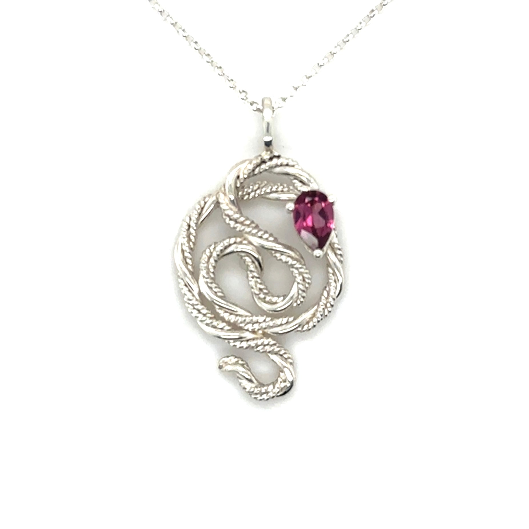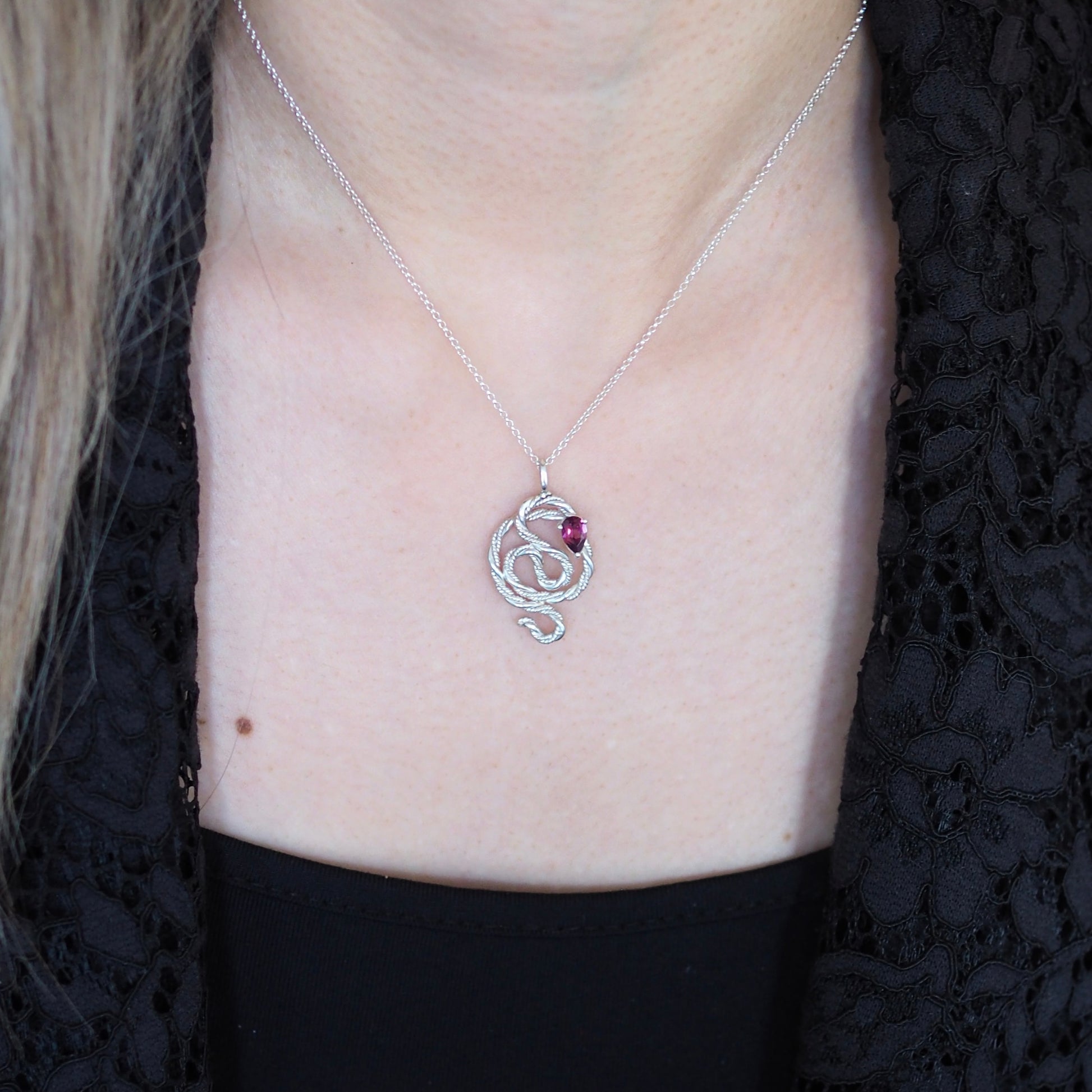 Rhodolite Garnet Snake Necklace • Sterling Silver