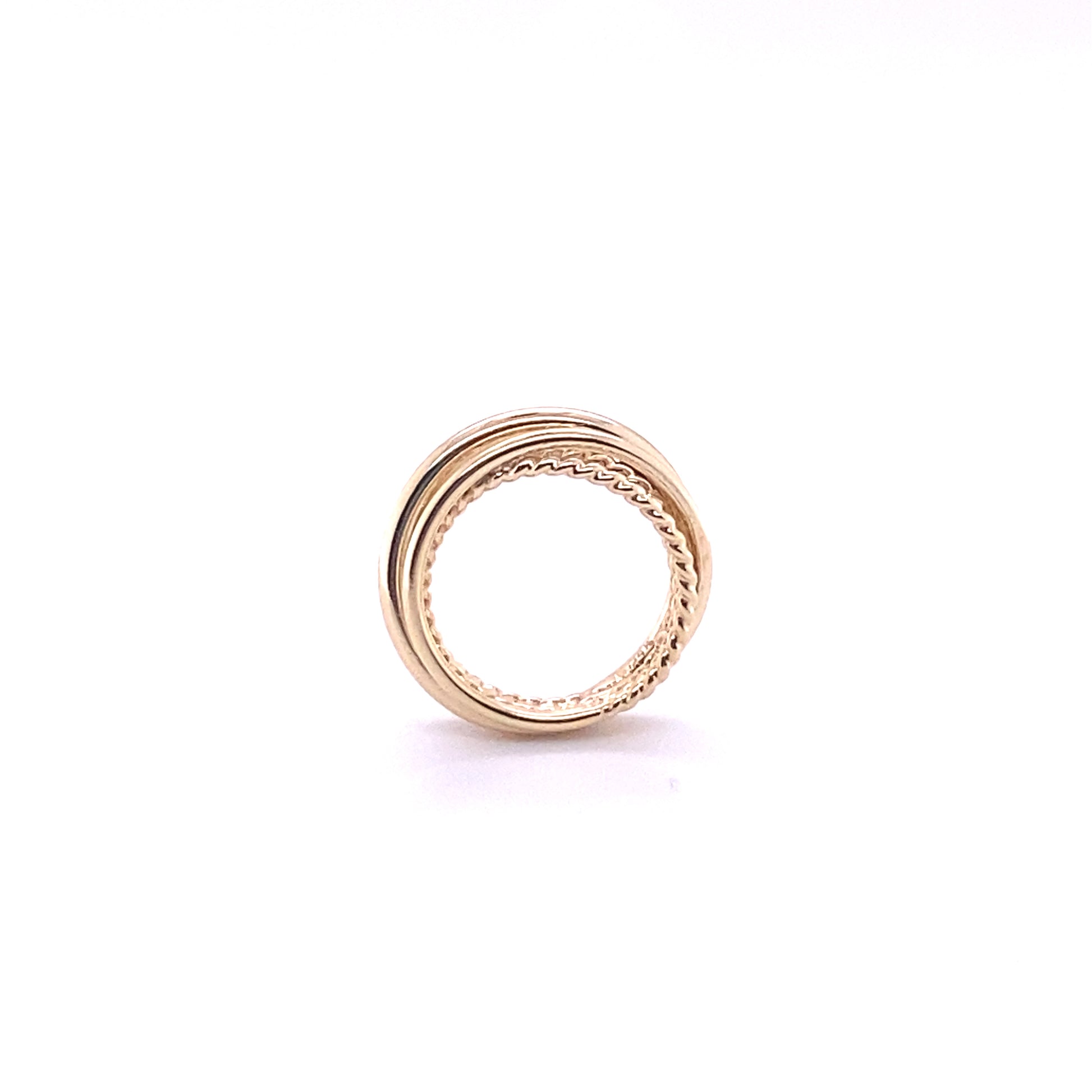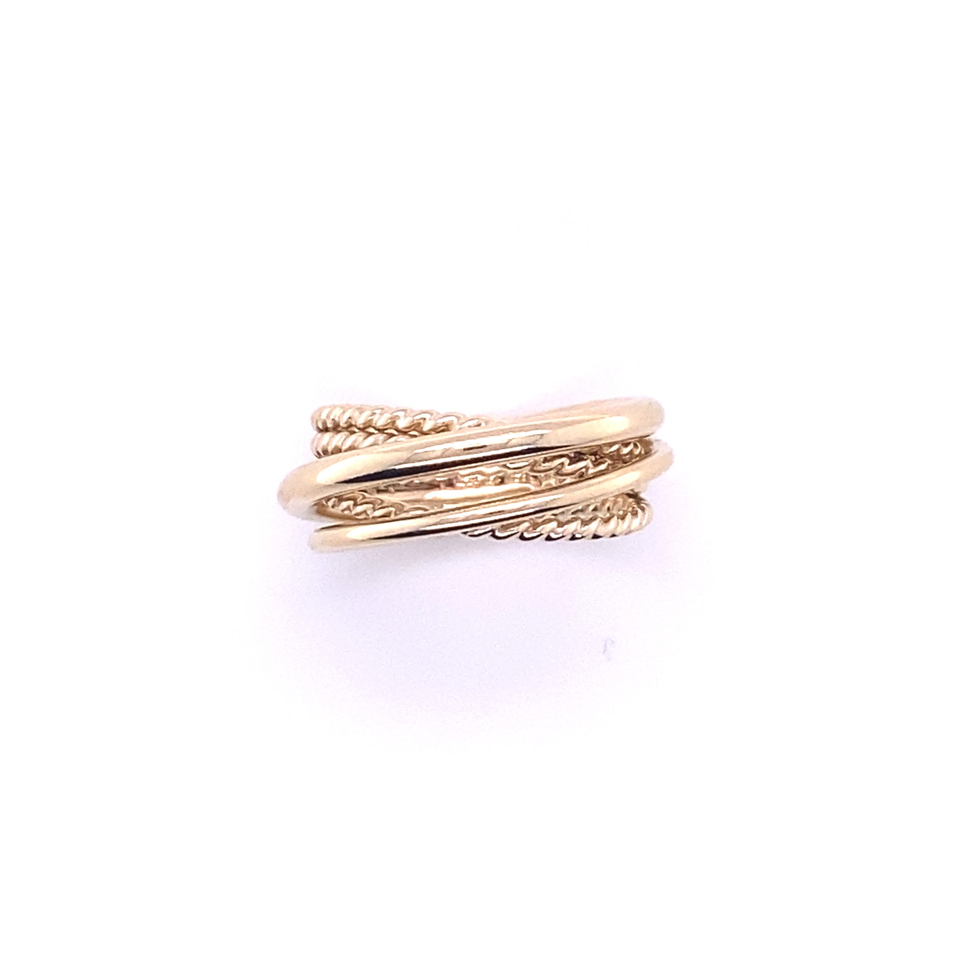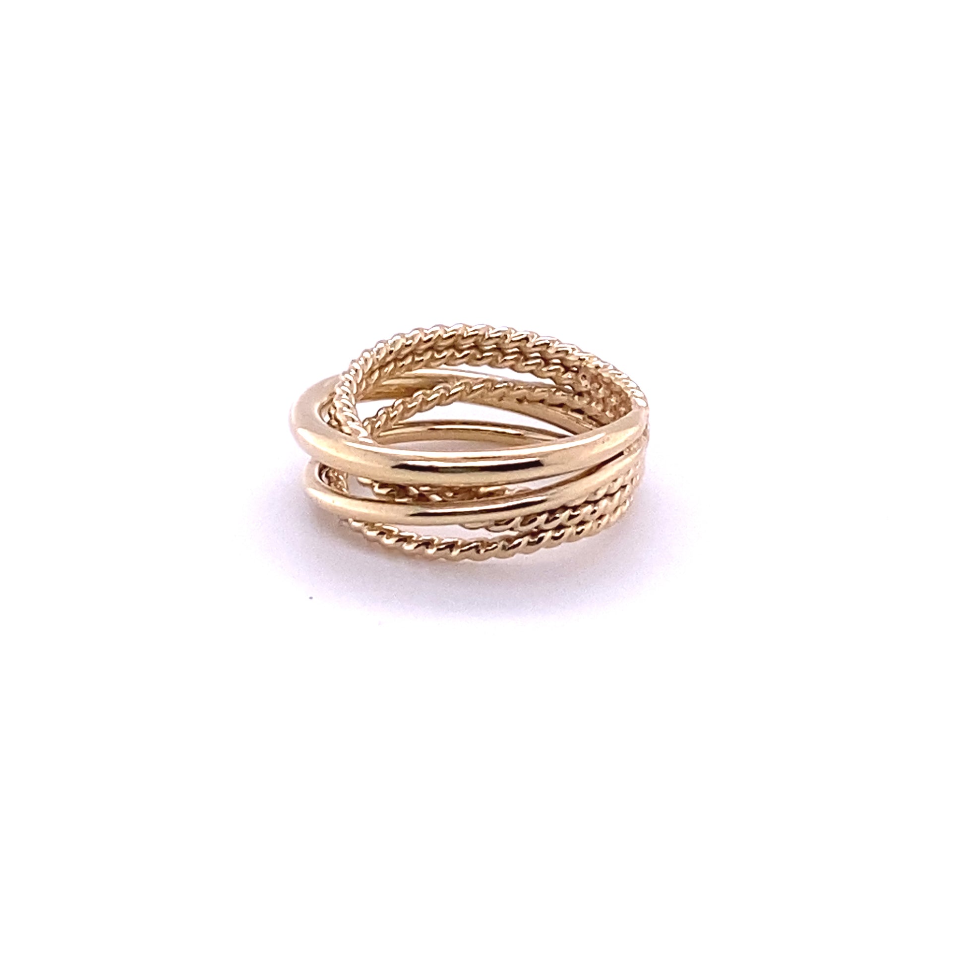 This crossover ring is an original NHU Jewelry design made with two rounded bands and three twisted bands fused together.